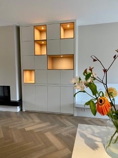 Als je inbouw wandkast op een plaats in de ruimte staat waar geen verlichting aanwezig is of het net wat donkerder is, kun eenvoudig verlichting toevoegen. Door het plaatsen van een dimmer kun je zelf altijd de lichtsterkte naar wens afstellen. Ideaal voor de juiste sfeer.