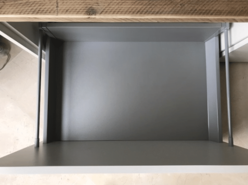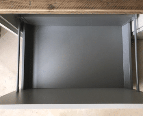Er kan ook nog een extra binnenlade achter het front van de ‘push to open’lade gemaakt worden. Deze binnenlade heeft geen push to open systeem en is geschikt voor kleine zaken, zoals post, bestek, sleutels etc. Deze lade heeft ook een softclose techniek Er zijn diverse soorten binnenlades. We kijken altijd welke soort binnenlade het beste bij jouw ontwerp past.