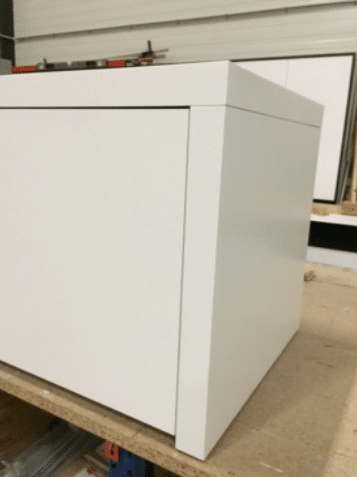 Gegrondeerde MDF dat wordt afgelakt in wit. Dit kun je zelf doen, maar wij kunnen het ook voor je doen of een schilder (lees: Waarom kiezen voor gegrondeerde MDF?).