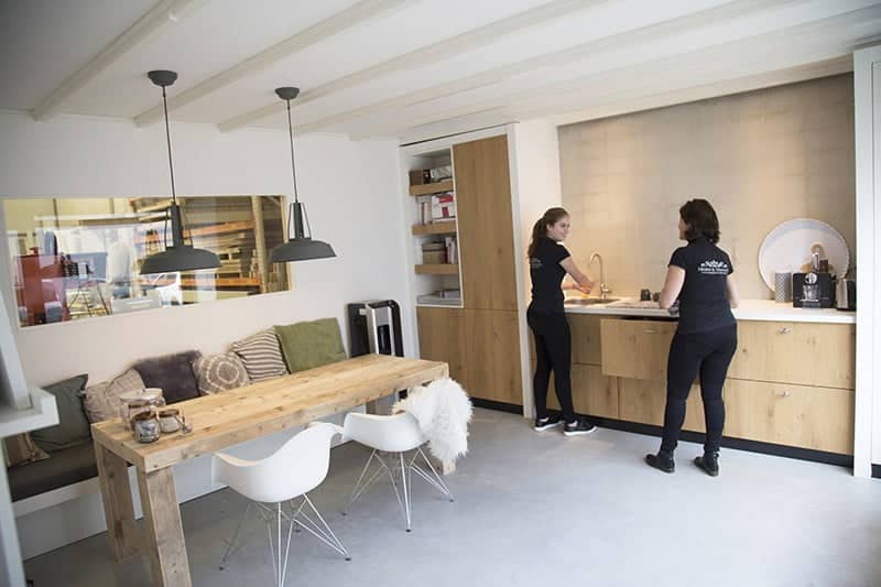 Toen we dit op de rit hadden konden we ook hele andere meubels gaan maken (maatwerk keukens, kastenwanden, volledige interieurs etc.). Omdat we hierdoor steeds vaker meubels leverden bij klanten waarbij helemaal geen splinter steigerhout aan te pas kwam, voelde de naam Steigerhout & Zo niet goed meer: het dekte immers niet meer de lading wat we deden en konden. Hierdoor hebben we besloten onze naam te veranderen in Meubel & Maatwerk.