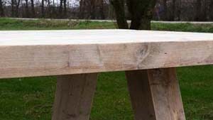 Steigerhout is geschikt voor binnen- en buitenmeubels, douglas alleen voor buitenmeubels.