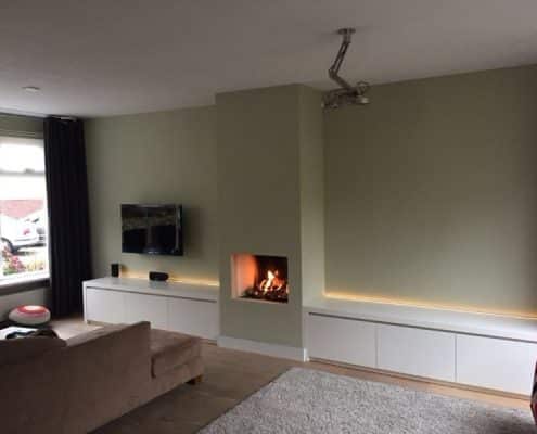 Of het nu een open haard, een gashaard of een elektrische haard is; wij bouwen er prachtige én praktische kasten omheen. Alle materialen waarmee we werken zijn hiervoor geschikt. Meestal is de schouw al geplaatst, maar in sommige gevallen hebben wij ook deze gerealiseerd.