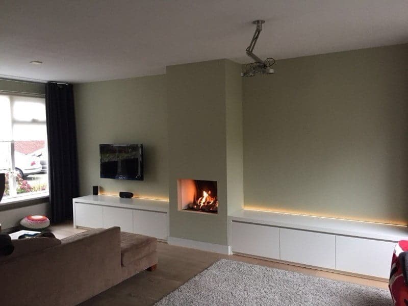 We hebben al heel wat zithoeken mogen voorzien van een kast voor haard en tv. Doordat we deze combinatie altijd op maat maken, past het eindresultaat exact bij de persoonlijke wensen de klant. Naast dat het er mooi uit moet zien, moet de maatwerk haardkast ook passen bij de manier van leven van de bewoners.