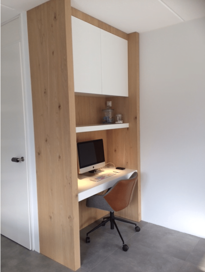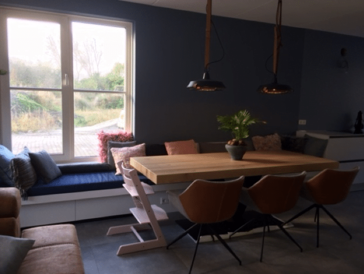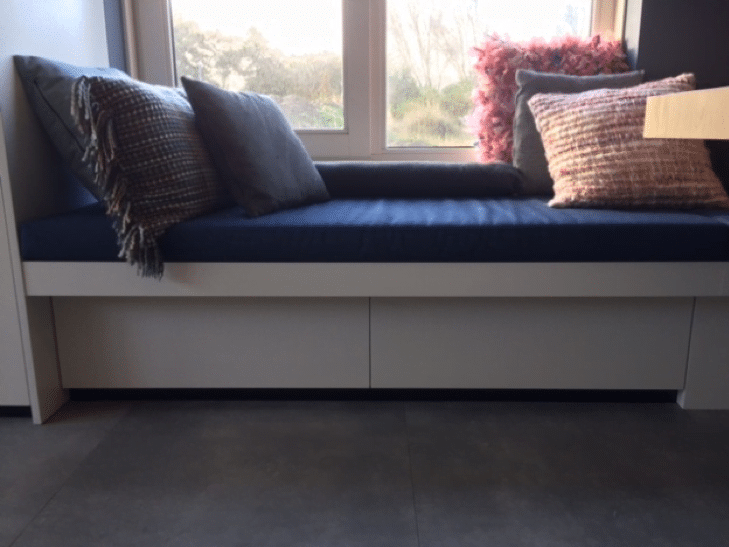 De woning is een standaard woning, maar door de maatwerk meubels konden zij hun wensen laten vervullen: