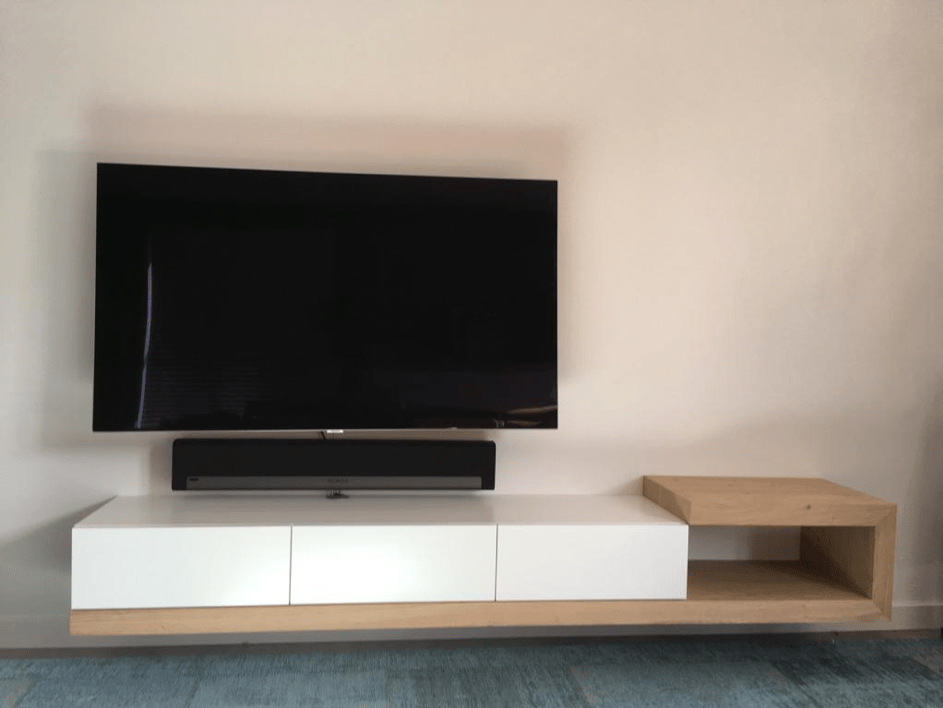 In het najaar van 2018 namen Ed en Claudia opnieuw contact met me op. Dit keer voor een tv-meubel. In 2017 hadden we samen al overleg gehad over een ontwerp, maar ze waren toen nog niet 100%zeker of ze het zo exact wilden. Het is dan altijd goed om je ideeën en wensen gewoon de tijd te geven; laat het maar even sudderen…. Je gaat dan vanzelf anders kijken naar tv-meubels of foto’s en plaatjes hiervan. Dat is goed: dat brengt je weer verder in het proces van jouw eigen wensen!