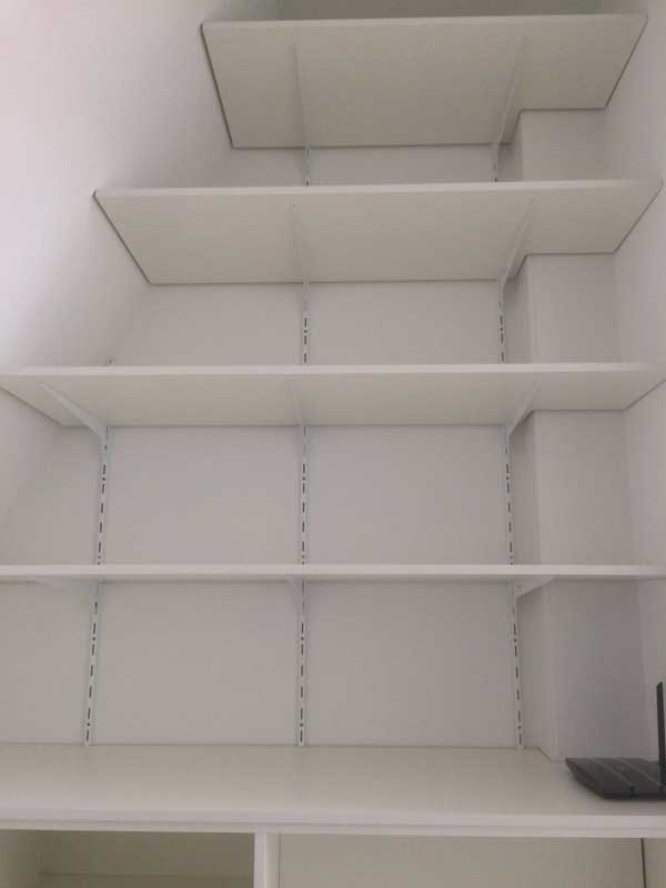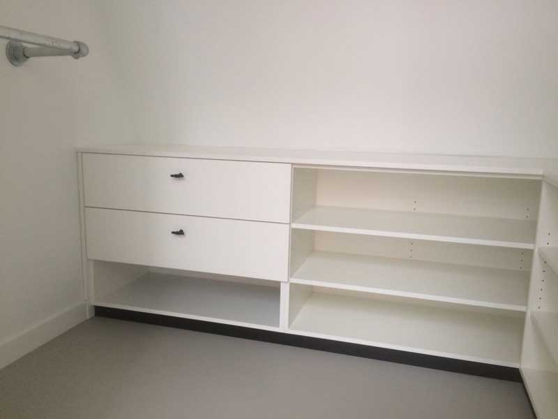Op de overloop is een ruimte welke Joyce en haar man als kledingkast wilden gaan gebruiken. Maar omdat deze ruimte niet heel groot was, een schuine muur had en waar ook nog de techniek voor de vloerverwarming aanwezig was, wisten ze niet of dit eigenlijk uberhaupt wel mogelijk was.