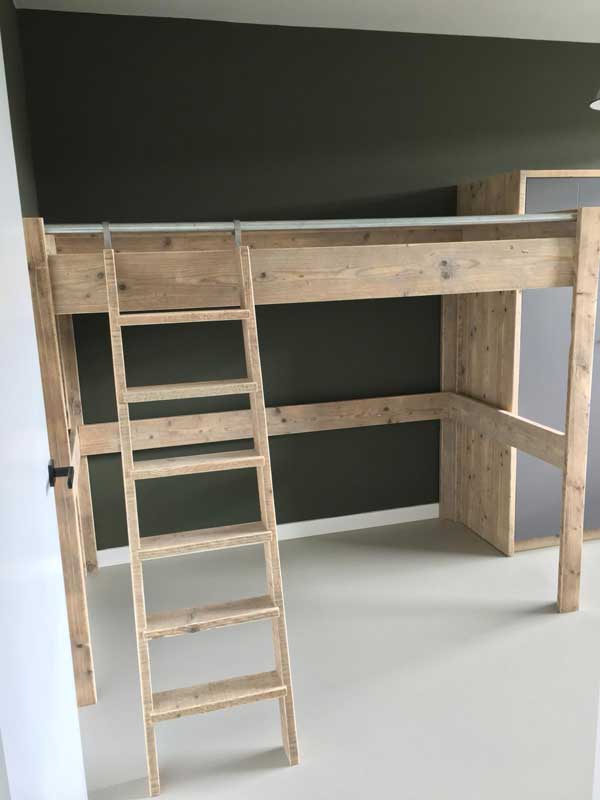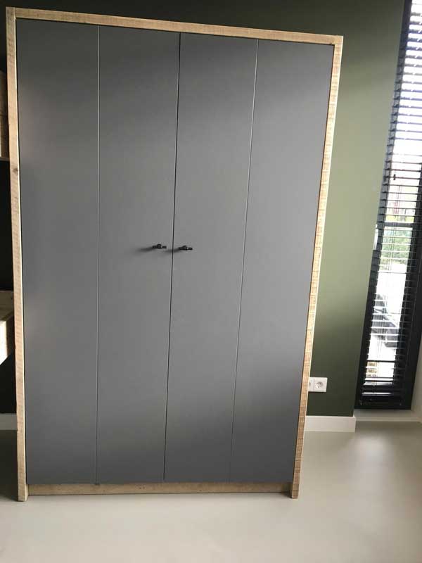 Voor de kamers van de kinderen had Joyce al foto’s van een hoogslaper, kledingkast en bureau op onze website gezien welke haar aanspraken. We hebben deze meubels als uitgangspunt gehouden, maar wel aangepast aan de maten van de slaapkamer, zodat ook deze exact hierop afgestemd werden.