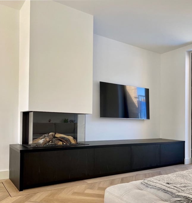 Wil jij net als deze bewoners de haard graag in de woonkamer, verwerkt met een tv-meubel op maat? Of kies jij voor een elektrische haard in een inbouwkast? Of wellicht verwerkt in een tussenwand, tussen de woonkamer en de keuken? De mogelijkheden zijn eindeloos, maar jouw budget mogelijk niet. Vaak is het goed mogelijk om een maatwerk meubelstuk in fases te laten maken. Daarover lees je meer in ons artikel ‘zo worden maatwerk meubels betaalbaar‘. Neem gerust contact met ons op om jouw droomplaatje te bespreken. Dan kunnen wij voor je uitschetsen wat de mogelijk fases en bijkomende kosten zijn. Om die manier verspreid je de kosten en heb jij toch dat maatwerk meubelstuk dat exact aansluit bij je wensen!