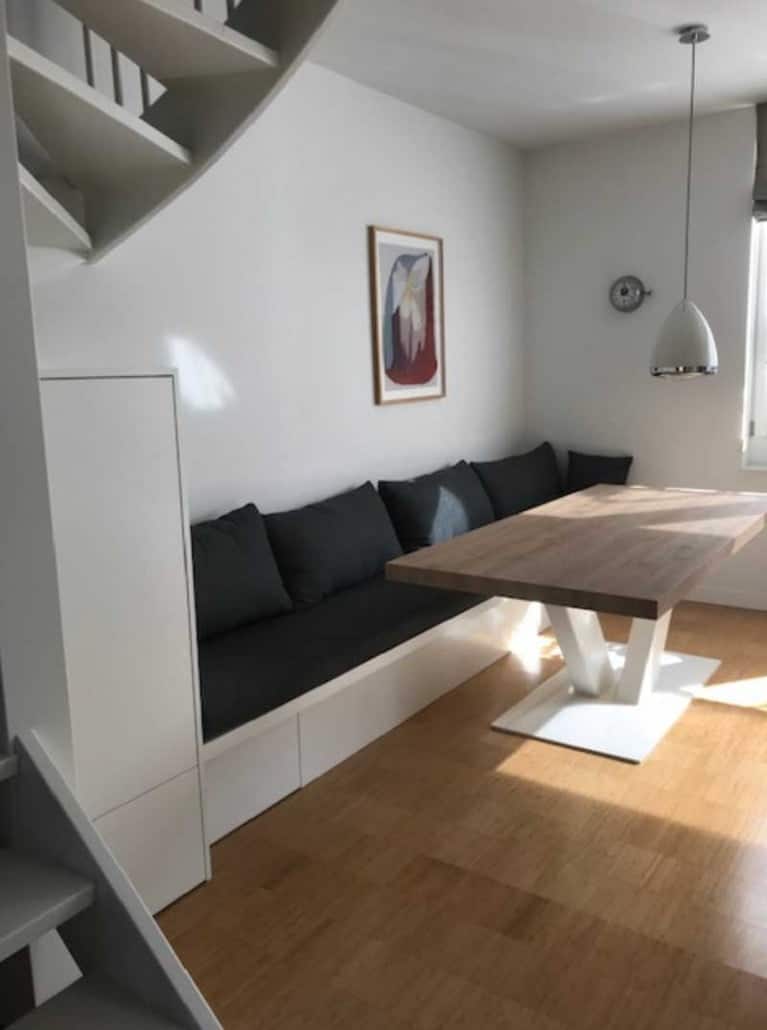 - Door de lange wandbank is veel zitruimte ontstaan.