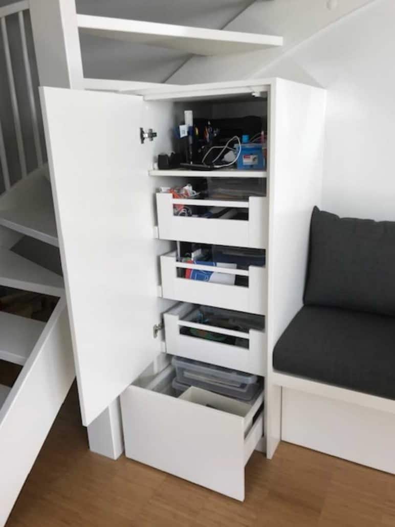 - De lades in de kast zorgen voor veel praktische opbergruimte.