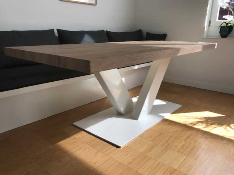 - De maatwerk tafel met Vpoot is exact op de gewenste maat door ons gemaakt. Bovendien zorgt dit model poot voor een makkelijke instap bij de wandbank én kun je extra veel stoelen naast elkaar en op de kopse kant kwijt.