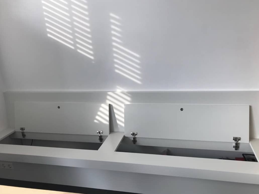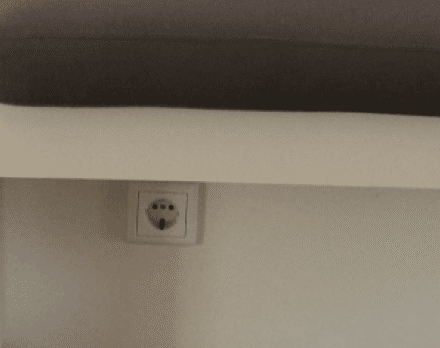 - Een ander muurstopcontact (wat door het plaatsen van de wandbank zou vervallen) is door ons op het kuitstuk van de wandbank gezet. Hierdoor is het dus gewoon nog bruikbaar én is er meteen een stroompunt bij je tafel, wat altijd handig is.