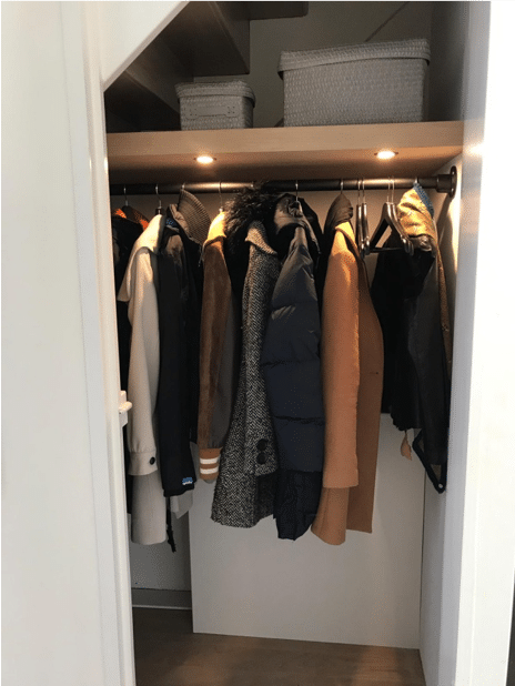De bewoner had het idee om een wandlamp in de trapkast te plaatsen, maar wij adviseerden inbouwspots in de plank. Zeg nu zelf: dat geeft toch een veel sjieker eindresultaat?!