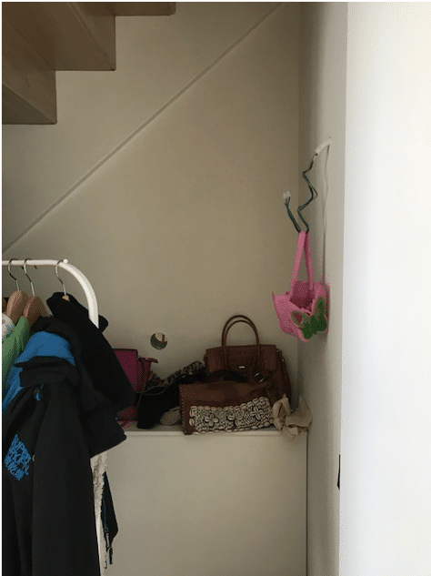 De trapkast in dit huis was rommelig en niet zo praktisch. Door een maatwerk plank in eiken fineer en een stoere zwarte stang te monteren oogt alles weer strak, rustig en netjes.