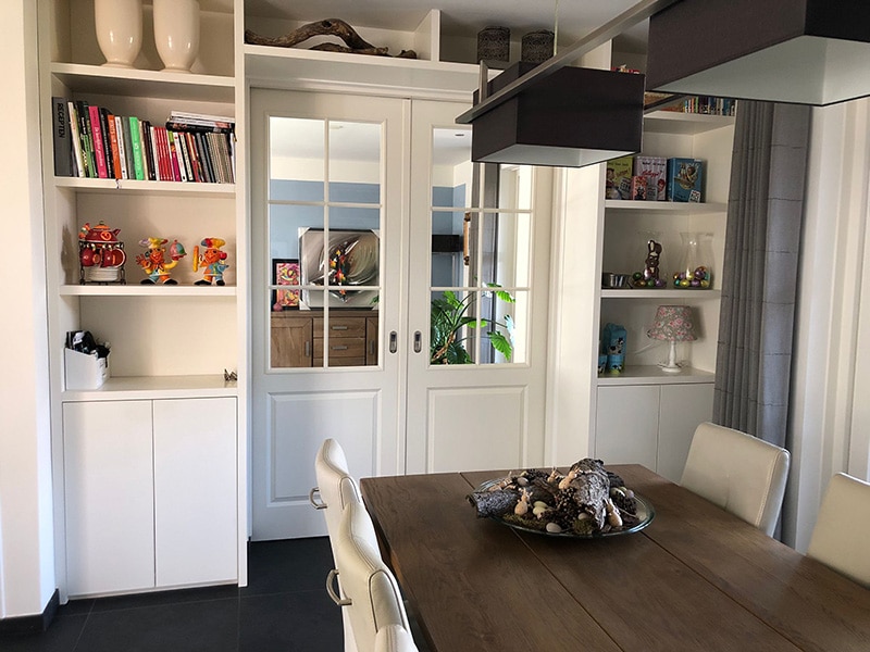 Een maatwerkmeubel is een slimme investering voor de toekomst in jouw interieur. Onze maatwerkmeubelen worden gemaakt van hoogwaardige materialen en gaan daardoor veel langer mee dan standaard meubels. Hierdoor hoef je ze minder snel te vervangen en kan het meubel naar verloop van tijd aangepast worden naar jouw wensen en behoeften door enkel een paar kleine aanpassingen te doen, zoals in dit geval alleen maar andere planken in de kast te leggen.