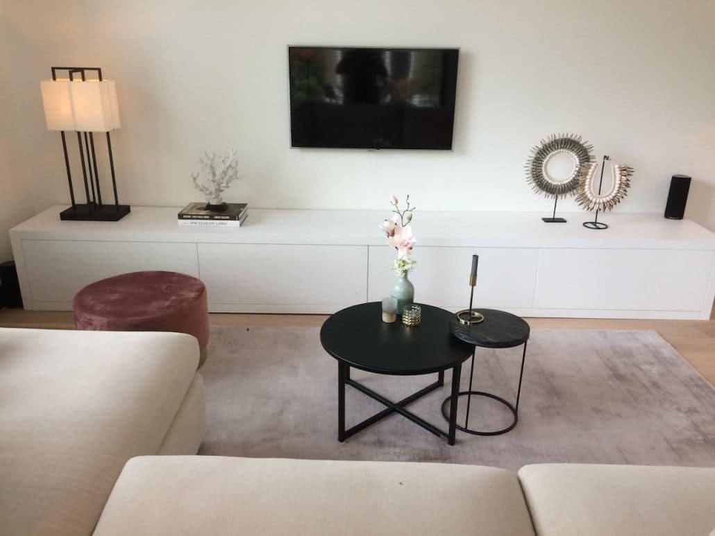 - Alle muurstopcontacten, draden van apparatuur en boxen zijn weggewerkt in de kast.