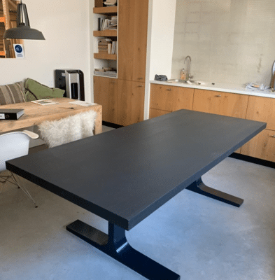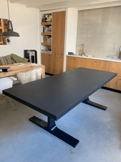 Een ander groot verschil is dat je bij een maatwerk tafel geen ‘productieproduct’ koopt. Niet dat dit bij voorbaat slecht of minder is, maar ik heb in de afgelopen jaren heel wat van deze tafels gezien die in het echt minder mooi en/of van kwaliteit waren dan de nieuwe eigenaar verwachtte. Vaak zijn tafelbladen niet vlak, zwarte ijzeren onderstellen heel erg slordig gelast en afgewerkt, maten eigenlijk te groot en tot overmaat van ramp de klachtafhanding niet goed.